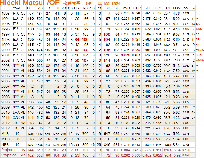 NPBでも,もう通用しないかもしれない.でも,NPBでは王を超えうる存在でしたし,MLBでも30本100打点を達成.