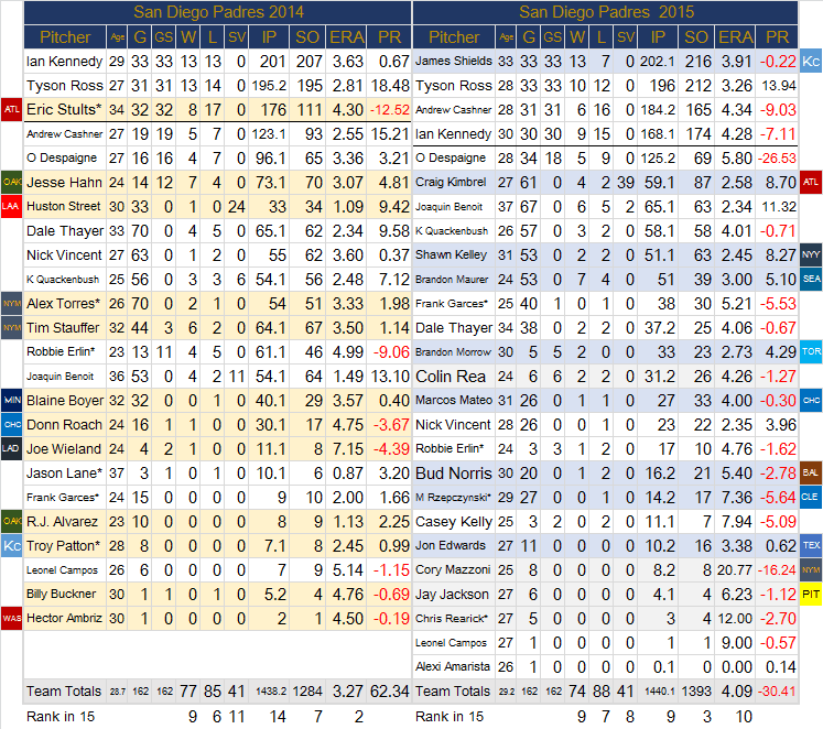 2014年と2015年の比較。PRは(リーグの平均防御率―その選手の防御率)×投球回数÷9で求められる。