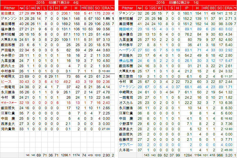 昨年はマエケンと黒田のダブルエースで優勝しかないと思っていたのに4位。