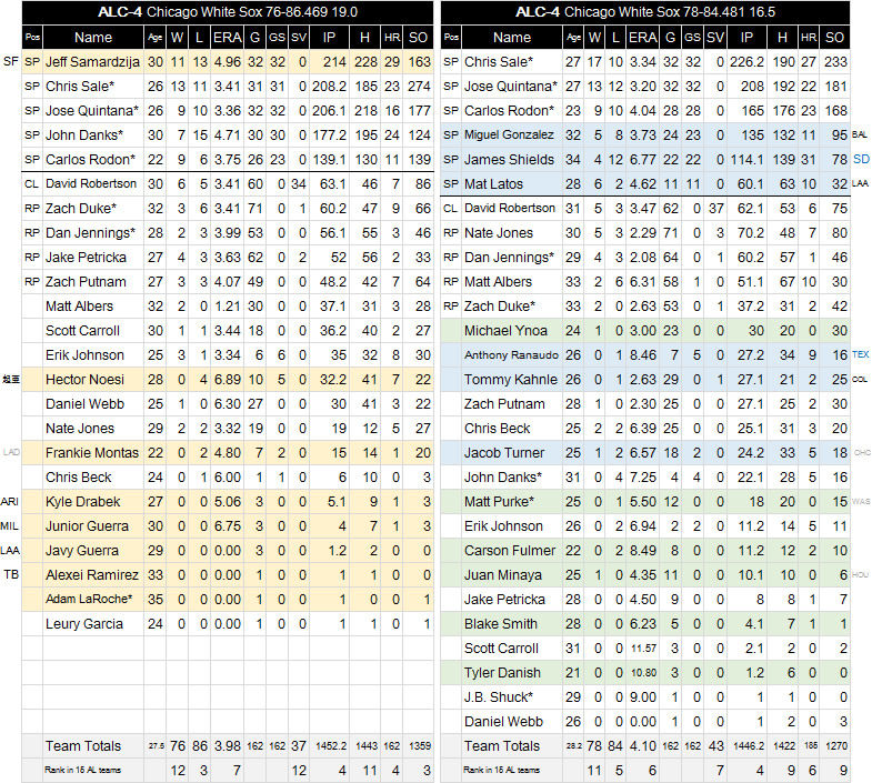 クリス・セールとホセ・クインタナが200回を投げてエースの働き。2人で30勝22敗。抜群とは言えないが、まずまず働いたと言えよう。