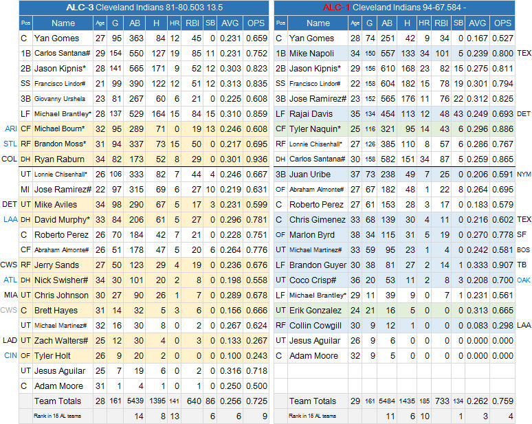レンジャースから来たマイク・ナポリが34本塁打、101打点、一塁からDHにコンバートしたカルロス・サンタナも34本塁打。フランシスコ・リンド―アも3割をマーク。