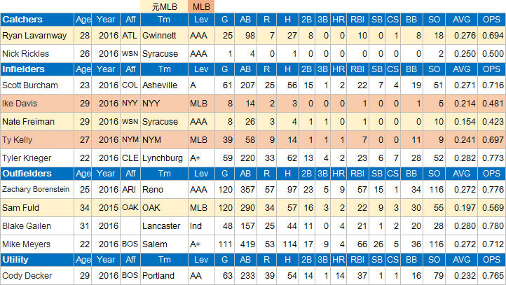 あとは大きいのを打ちそうな選手はいない。俊足のサム・フルド、MLBでは実績に乏しいがマイナーではシュアな打撃で知られるネイト・フライマン当りがレギュラーか。