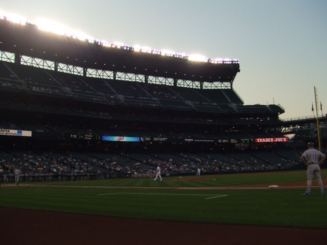 中堅を守っていたイチローは、自分が優先されるシチュエーションで、右翼を守るバーンズと交錯。バーンズは188㎝、95㎏。イチローよりもかなり大型。
