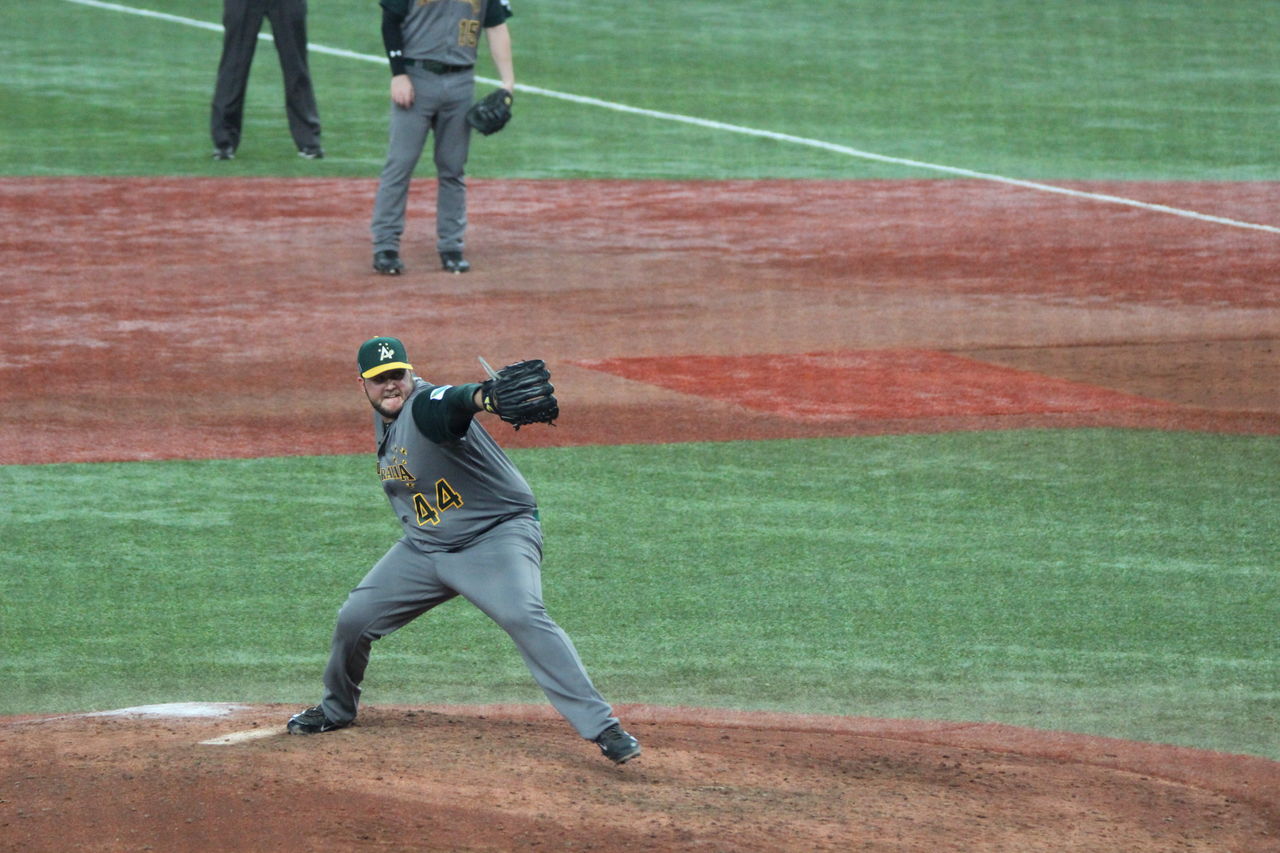 AUBLアデレードのルジック。上田監督なら公園でおっさんが投げているような、と言いそうなひょい投げ。大城を三ゴロ。