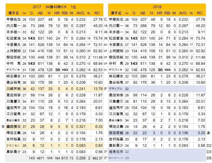 2017年と2018年、ソフトバンク打線の戦力比較(修正)