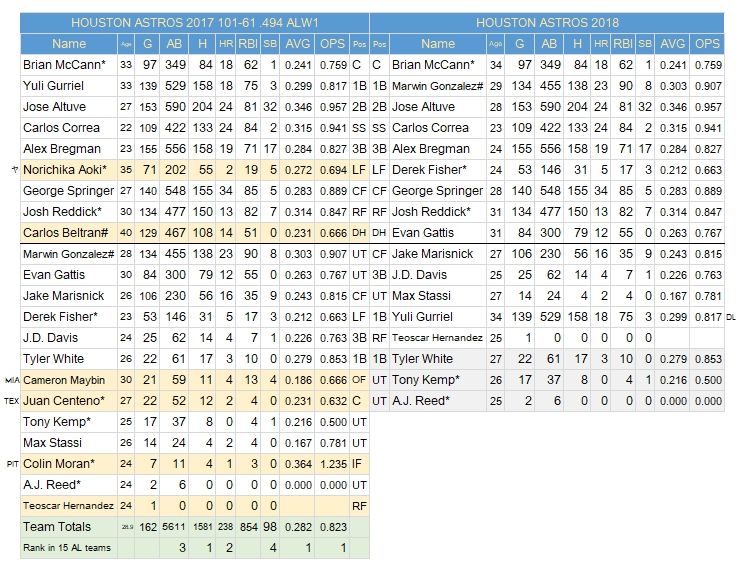 最後のワールドチャンピオン、アストロズはさすがに大きな異同はなかった。