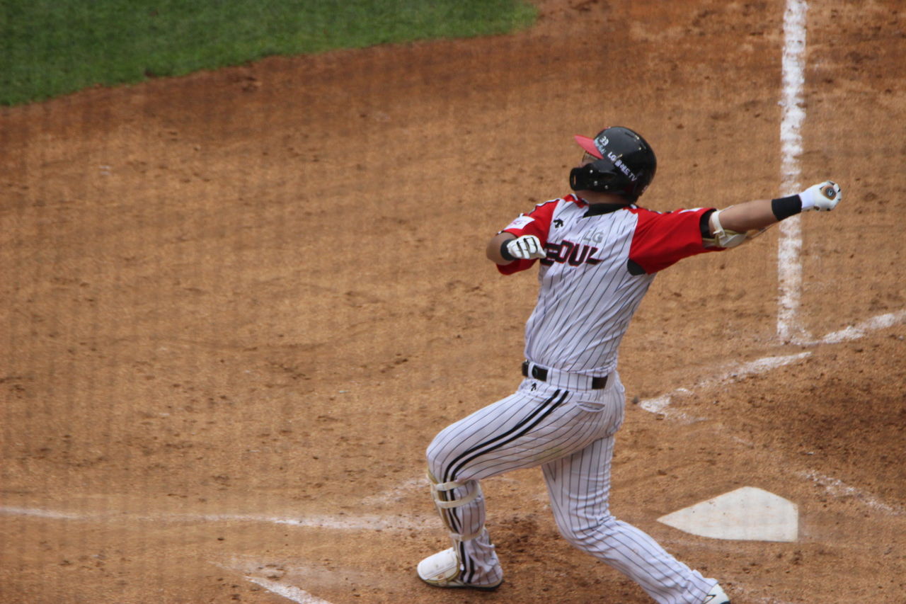 テレビでKBOの試合をずっと見ていたが、こちらは、片手一本で振り回す打者が多い。少し日本と違うように思う。LGのユニフォームは、近鉄バファローズに似ている。