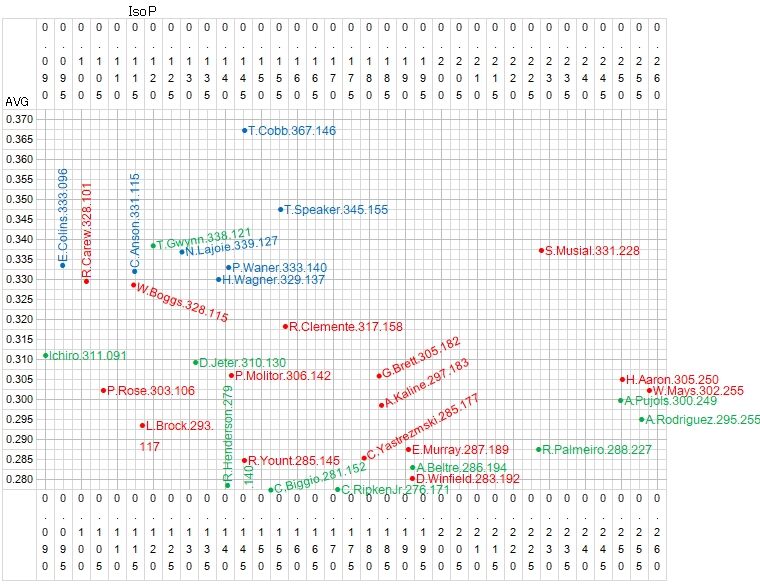 ただ、この表には3000本以下のバリー・ボンズやベーブ・ルースはおさまらない。IsoPが.300を優に超えるからだ。