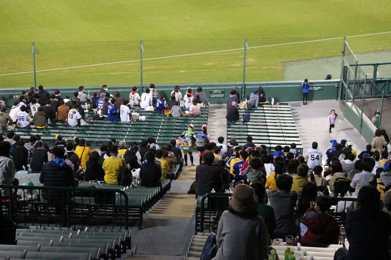 球場では、うるさいくらいに「マスクをしてください」「声を上げないでください」と言っているが、それでも試合の終わりがけになると、マスクを外して大声で笑い合う人があちこちに出てくる。