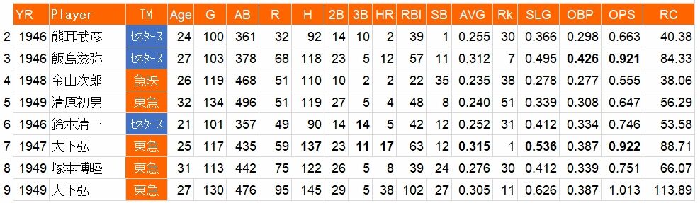 1948年は小鶴誠が一塁を守りRC82.65。