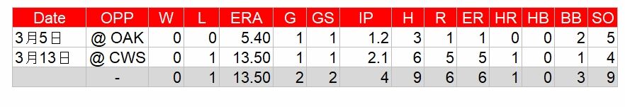 ともにオープン戦(スプリングトレーニング)では2試合を投げている。