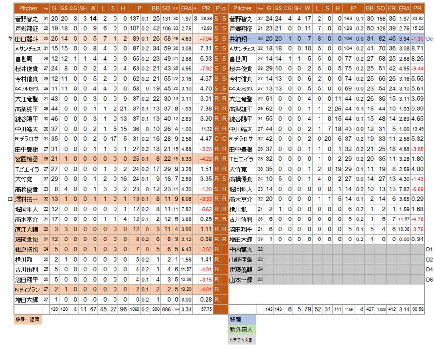 井納は、打球を受けて頭が破裂したという大誤報があったが、ベテランでもあるしチームが替わっても似たような成績を挙げるのではないか。