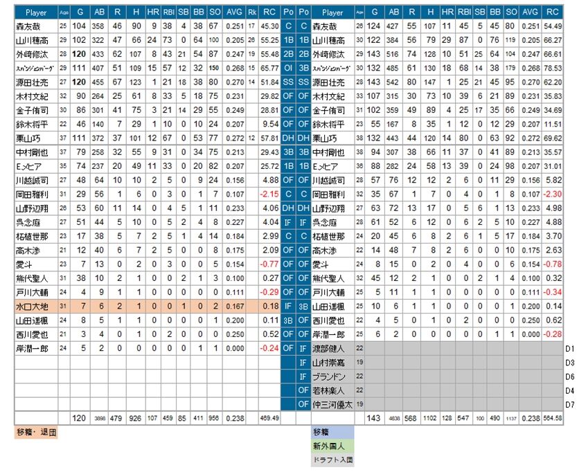 捕手は森友哉。1年おきに好不調を繰り返すので、今年は当たり年か。