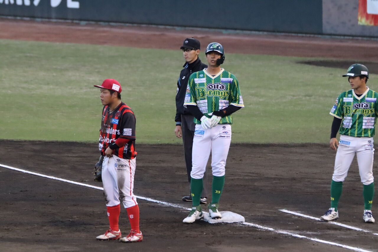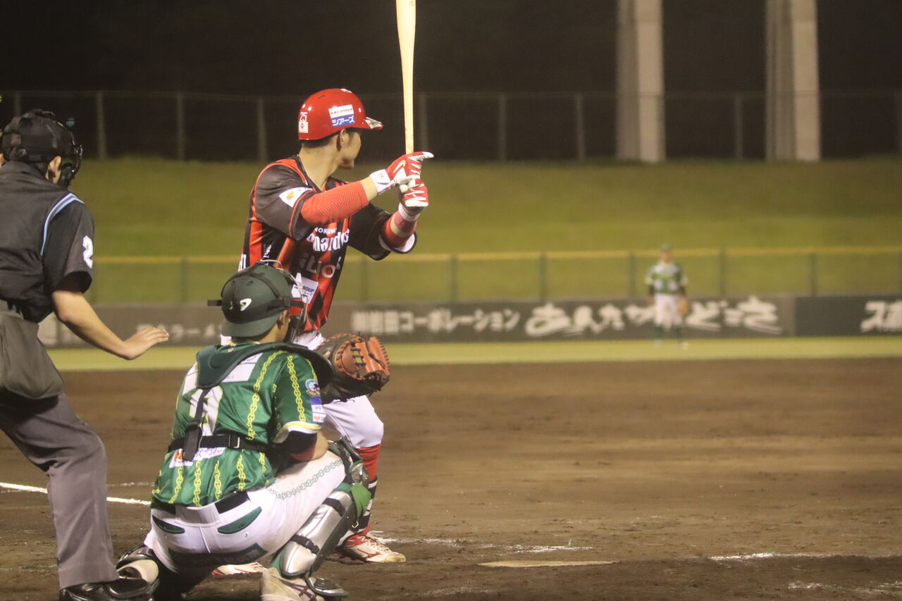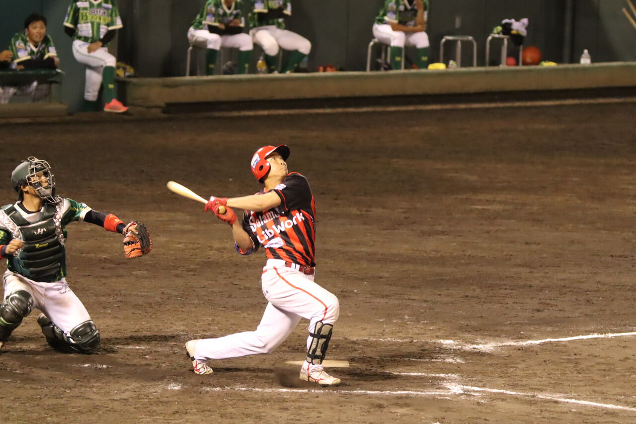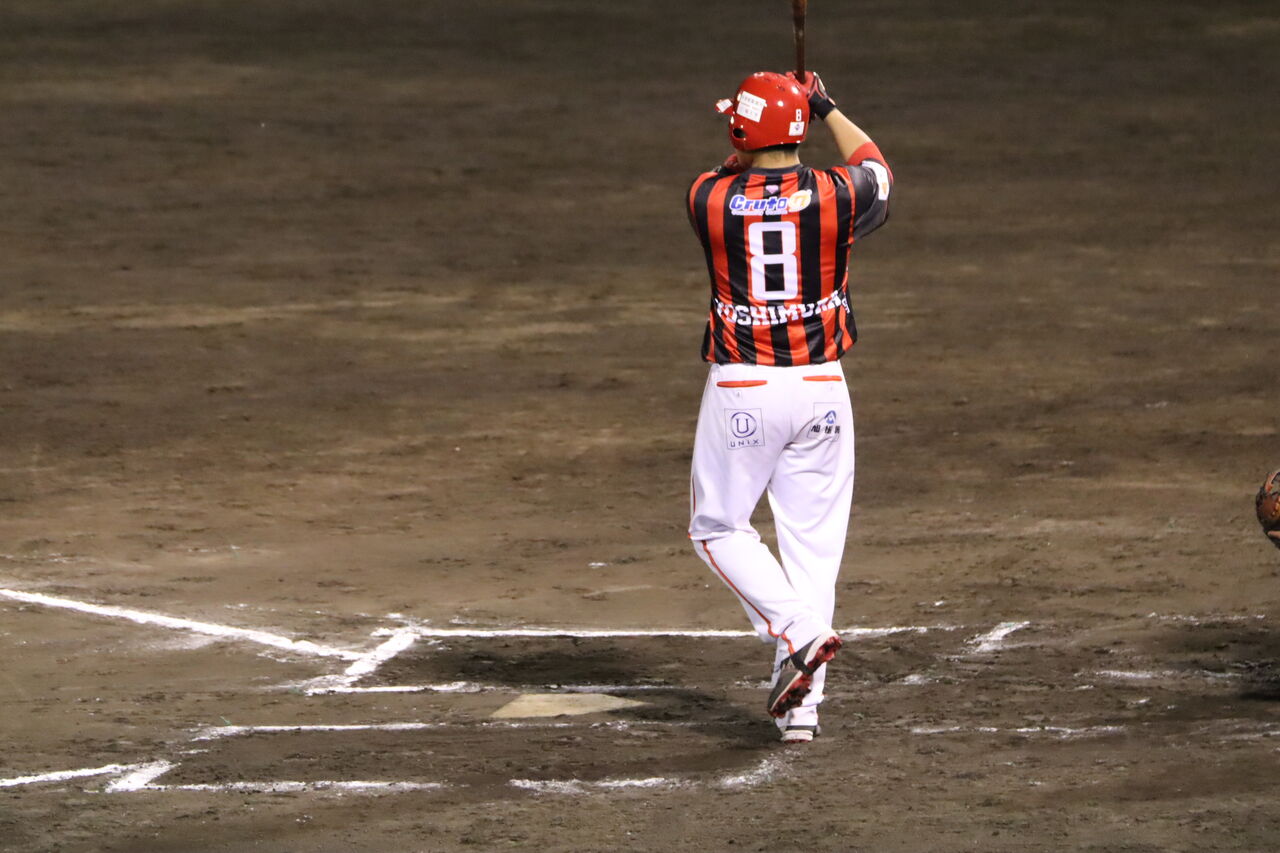 火の国では、吉村裕基がコーチ兼任で参加している。去年、琉球時代に話を聞いた。この日は途中から出場するも三ゴロ。