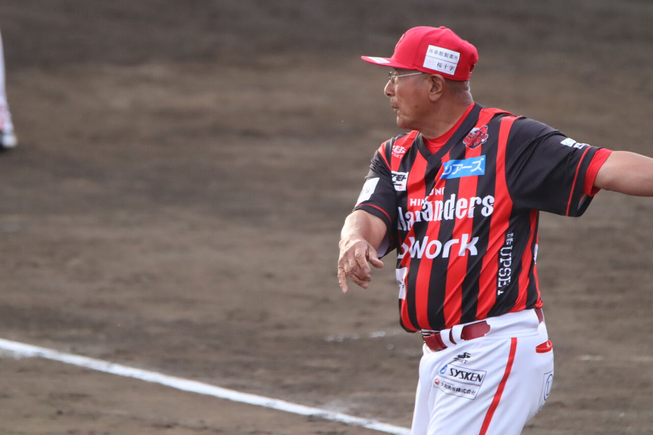 火の国サラマンダーズのノックが始まる。太ったノッカーがバットを振っている。細川亨監督かと思ったが、眼鏡をかけていて老けている。なんと、第2回ドラフトで1位で大洋に入った松岡功祐総合コーチだ。V9時代のテレビ中継でよく見た選手だ。