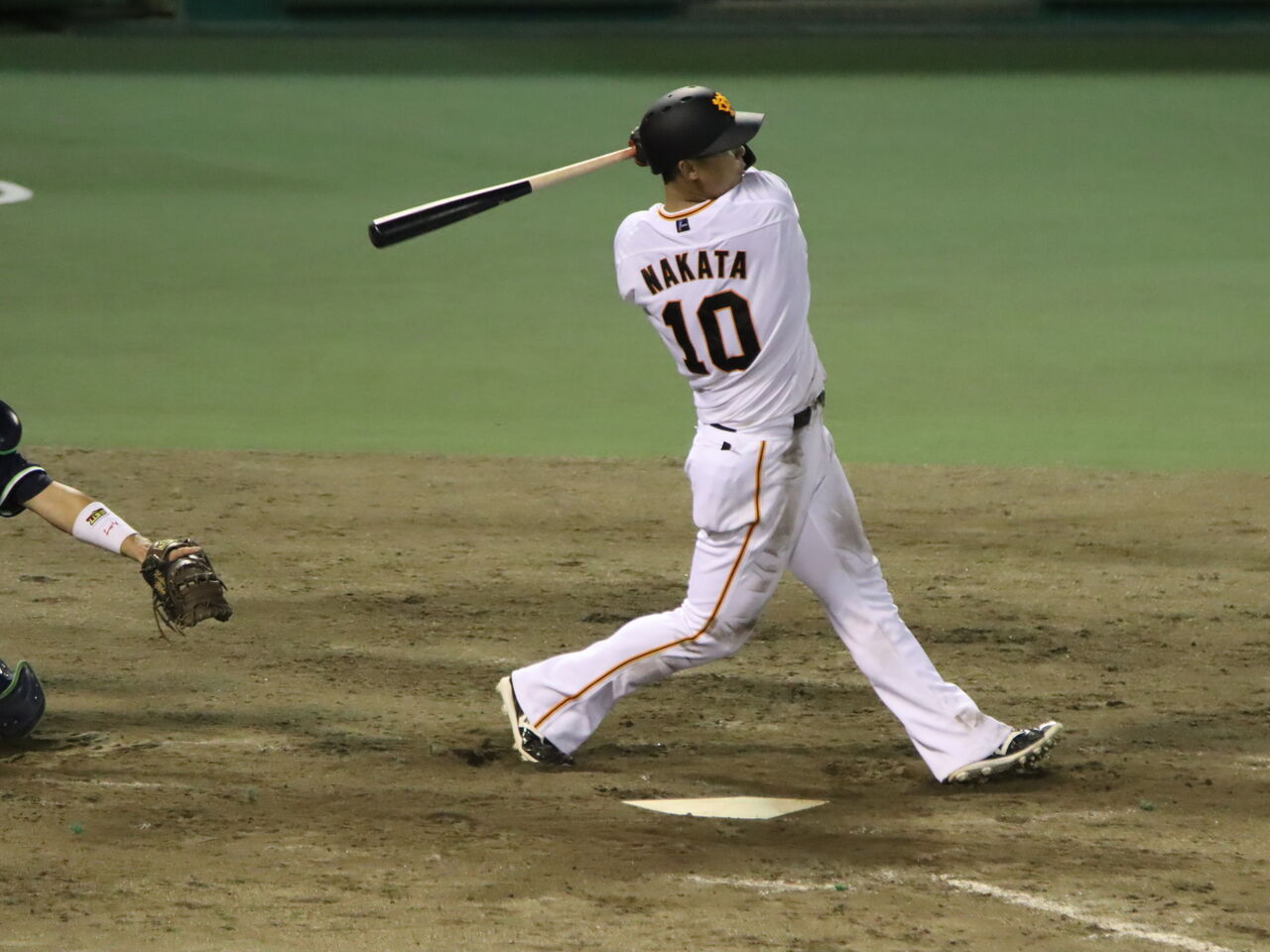 一塁を守る背番号「10」。スモークとは違うシルエットである。