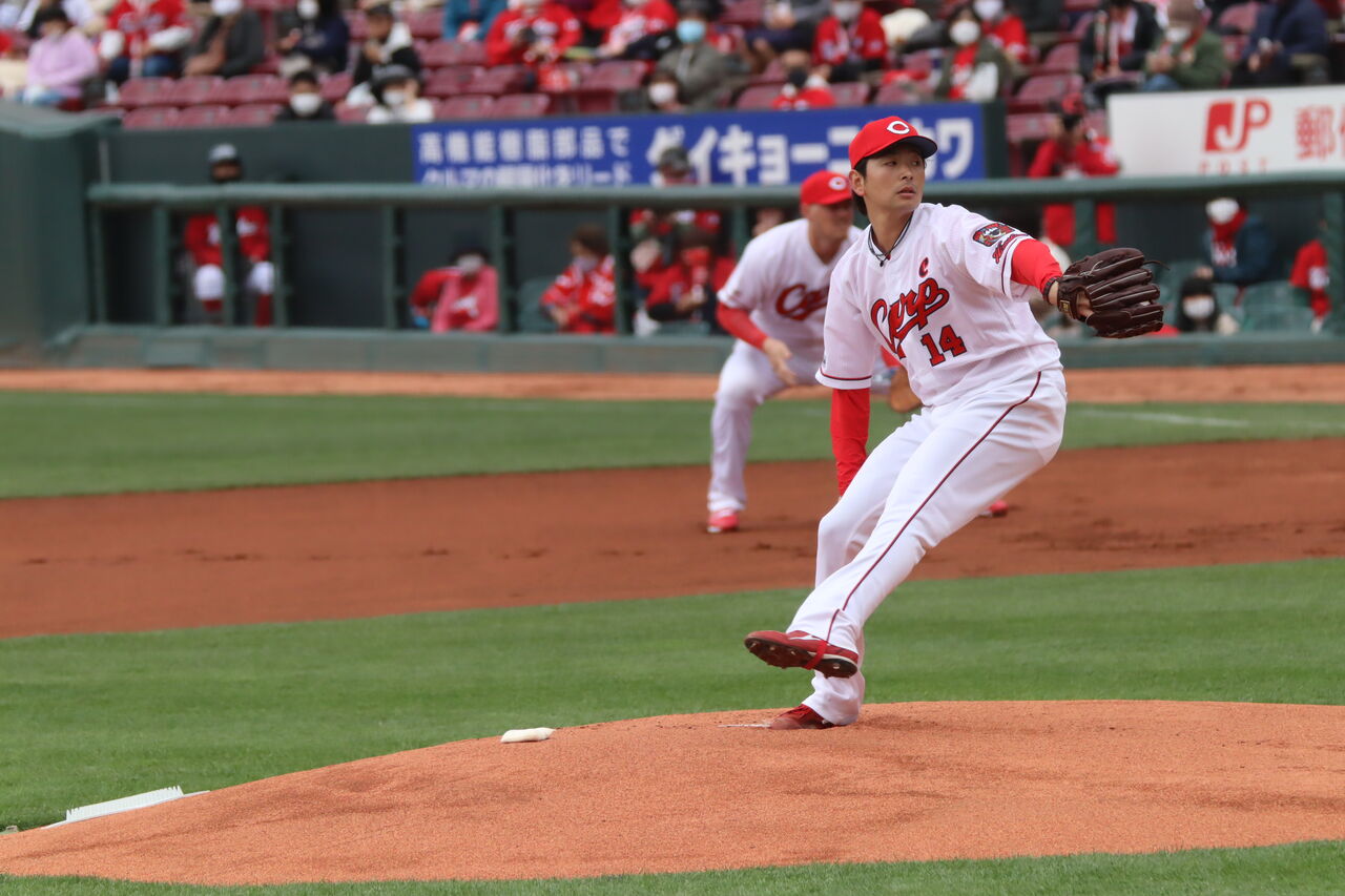 エース格だったジョンソンが大不振。新人の森下が二けた勝利を挙げて新人王、九里もまずまずの成績だったが、大瀬良は春先好調だったが、故障で離脱。遠藤はローテをほぼ維持したが勝ち星上がらず。左腕床田も今一つだった。