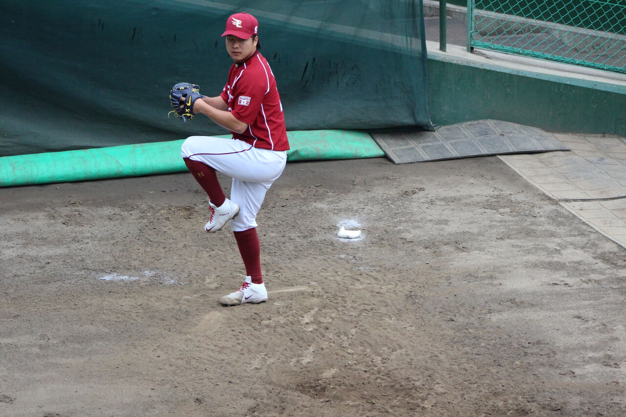 ブルペンは外にあるので、投手の練習風景を見ることができる。