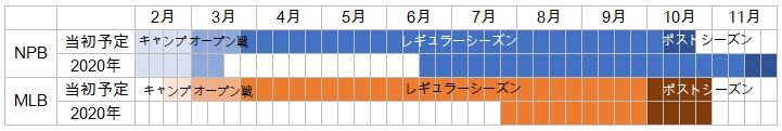 NPBとMLBの2020年のスケジュールについてざっくり見て行こう。