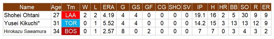 4月、MLBで投げた日本人投手は4人である。前田健太はリハビリ中、有原航平はレンジャーズ傘下AAAで投げている。