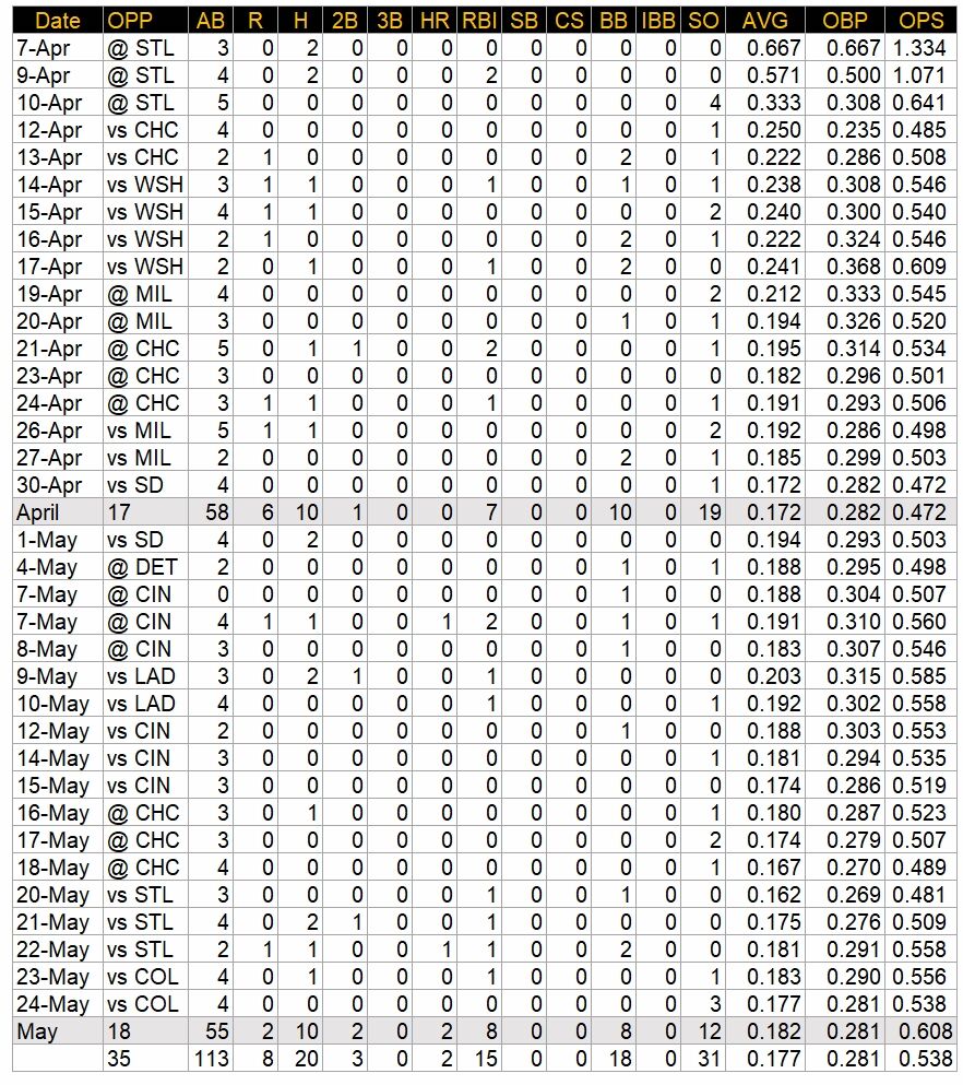 昨年、パイレーツに移ってからは本塁打が順調に出て中軸打者としての活躍をしたが、今年は春先から全く調子が上がらぬままだ。
