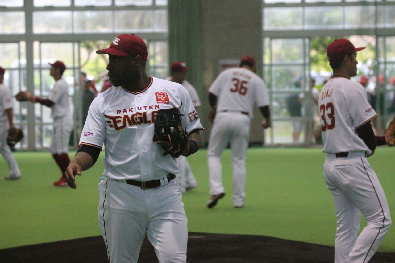 この日は雨で、室内練習場だった。外国人で2月初めから日本人に混じって練習する選手はそれほど多くない。前年から副キャプテンになっていたが、チームの信頼も篤かった。巨人へのトレードも石井一久GMが「活躍の機会を与えたい」と思ったからだと言う。