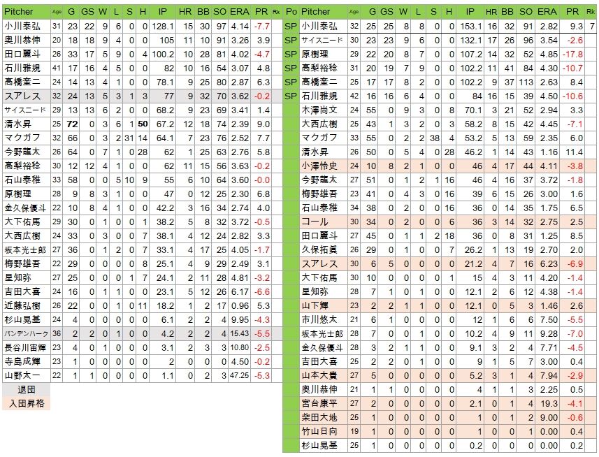 二けた勝利はいない。最多勝はサイスニードと救援の木澤の9勝。要するにエース不在だったのだ。