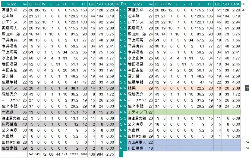 松本航、エンス、與座は盤石として、昨年負けまくった新人左腕の隅田は立ち直るか?