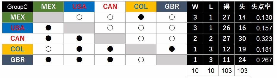 GroupCの最終星取表