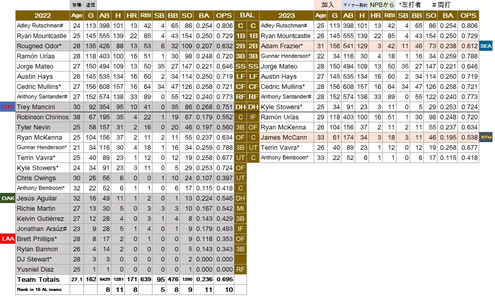 救援は昨シーズン中にホルヘ・ロペスがツインズに移籍。ただシオネル・ぺレス、フェリックス・バティスタ、キーガン・エイキンとしっかりした救援陣が残っている。