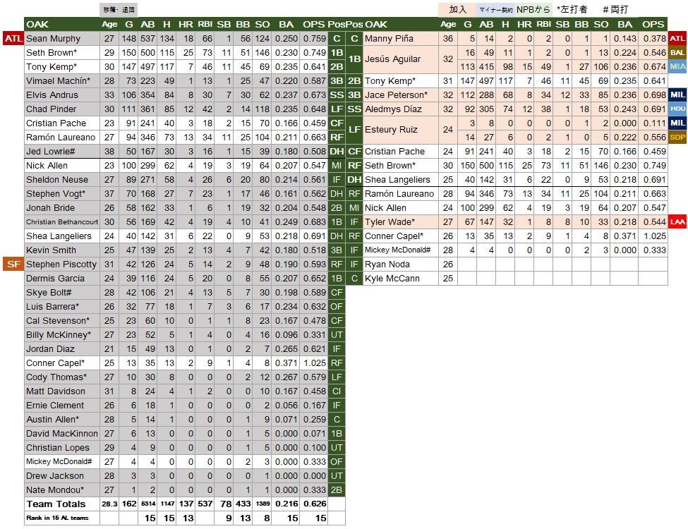 アレドミィス・ディアス、ヘスス・アギラなどの選手を獲得したが、生え抜きの大物が出てこない限り、解体モードのままで今季も行くのだろう。