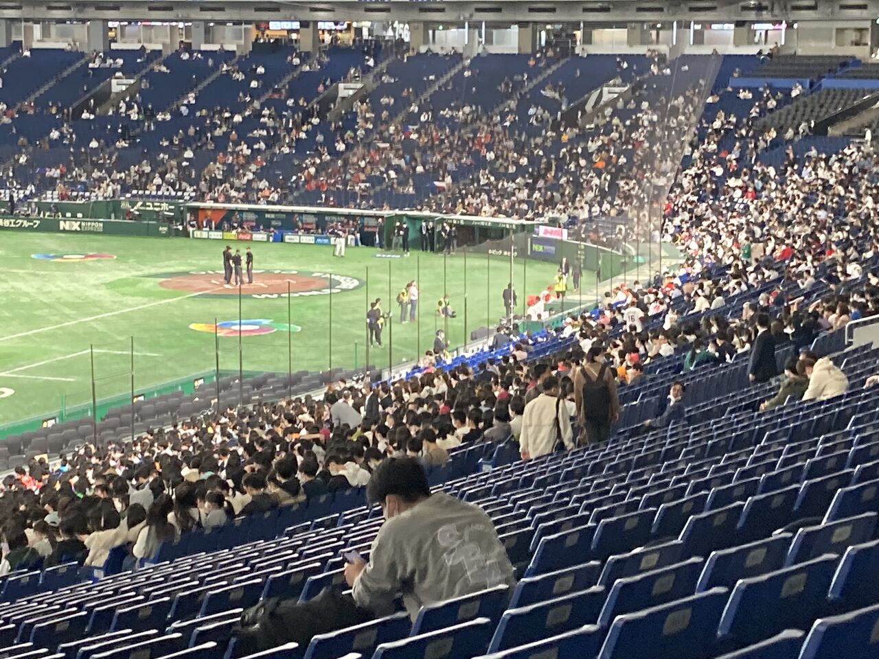 WBCでもそういう調子だった。WBCは通し券でずっと同じ人が隣にいたが、段々に私が「そういう人だ」ということがわかって「すいませんね」とか気を遣ってくれるようになった。