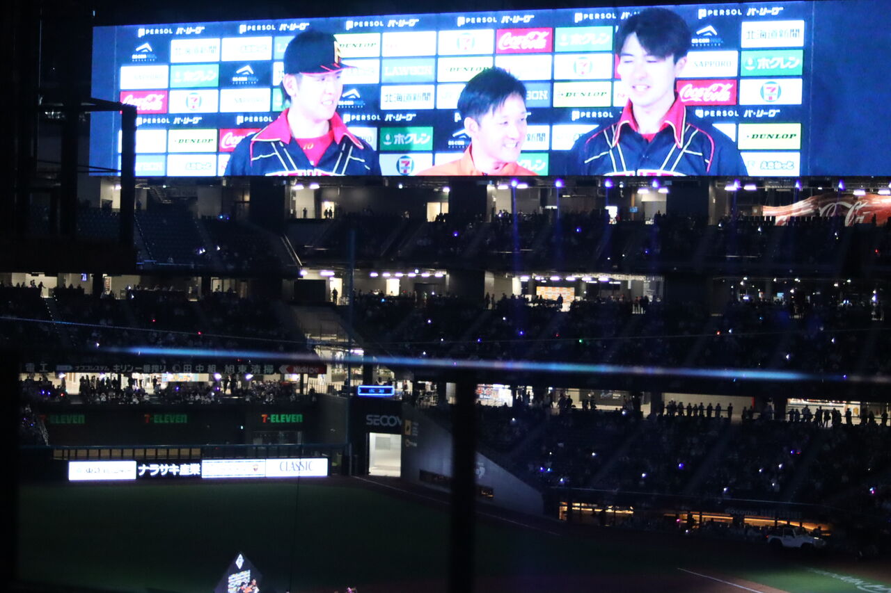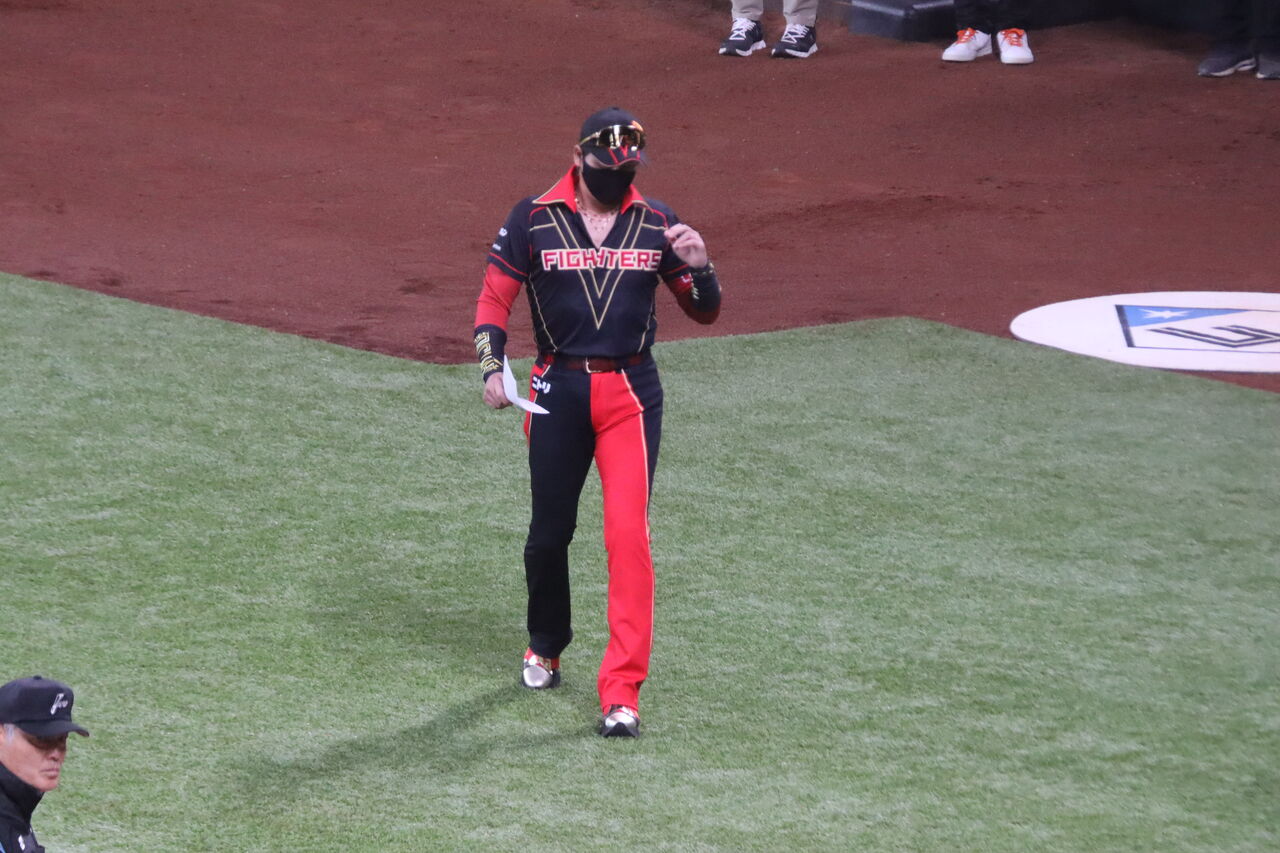 新庄監督はずっとマスクを着けたままだ。これもファッションの内なのだろう。さすがに一番似合っている。と言うか自分が着たかったのだろう。