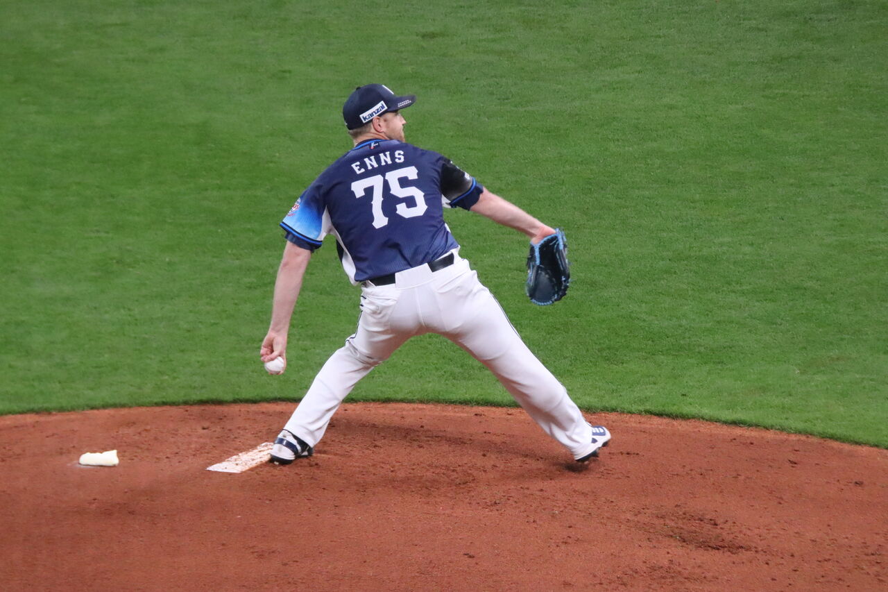 4回まで両投手ともに快調に飛ばしてきたが、5回、エンスが捕まる。万波が中前打