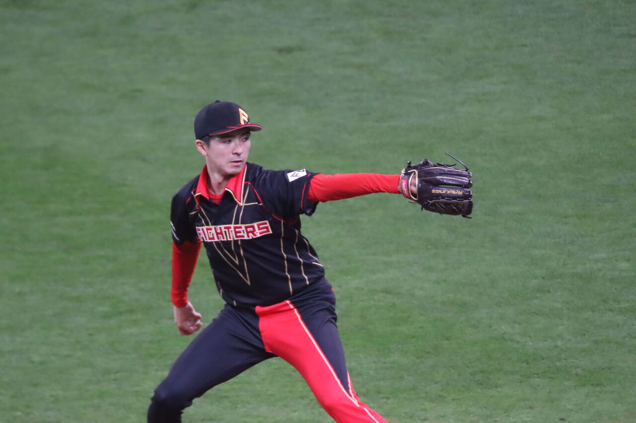 9回の上沢、顔に疲労が浮いているような。