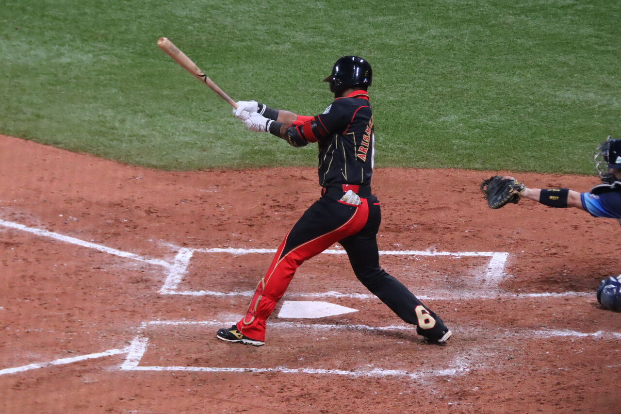 中村剛也は4回に左前にいい当たりの安打を打った。