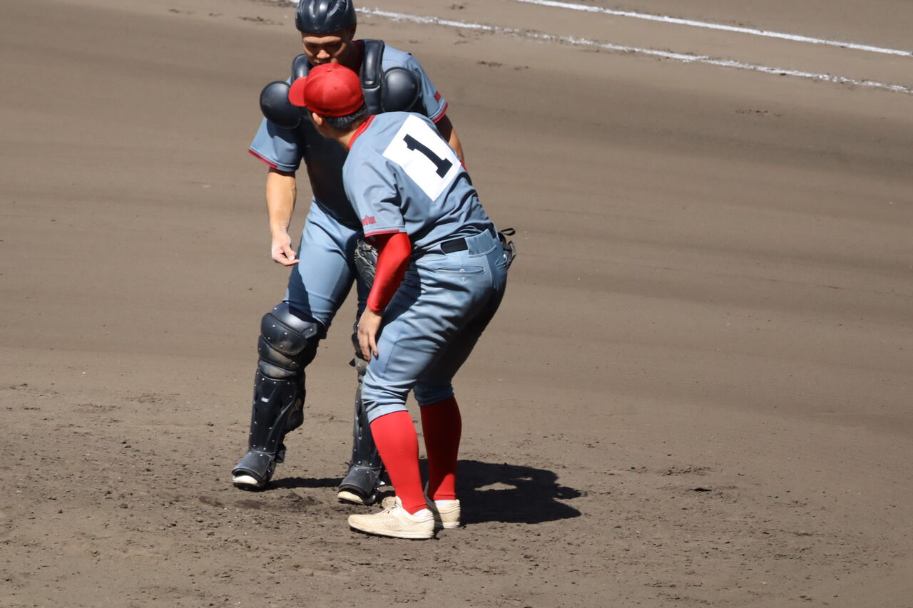 しかし試合開始直後の6回、浜松の投手の近藤が顔をゆがめ、捕手の新妻恭介がかけよった。