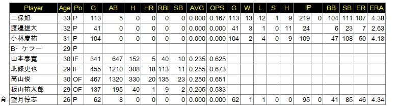 ソフトバンクから移籍した仁保、巨人から移籍した慶應高、慶應大の山本も戦力外。