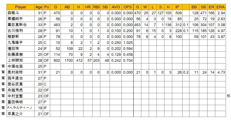 そして上林。今シーズン終盤まで一軍の試合に出ていたが。2019年に右手をはく離骨折して以降、不振が続いているが、他球団ならレギュラーも可能ではないか。2017年にはオールスターにも出場している。