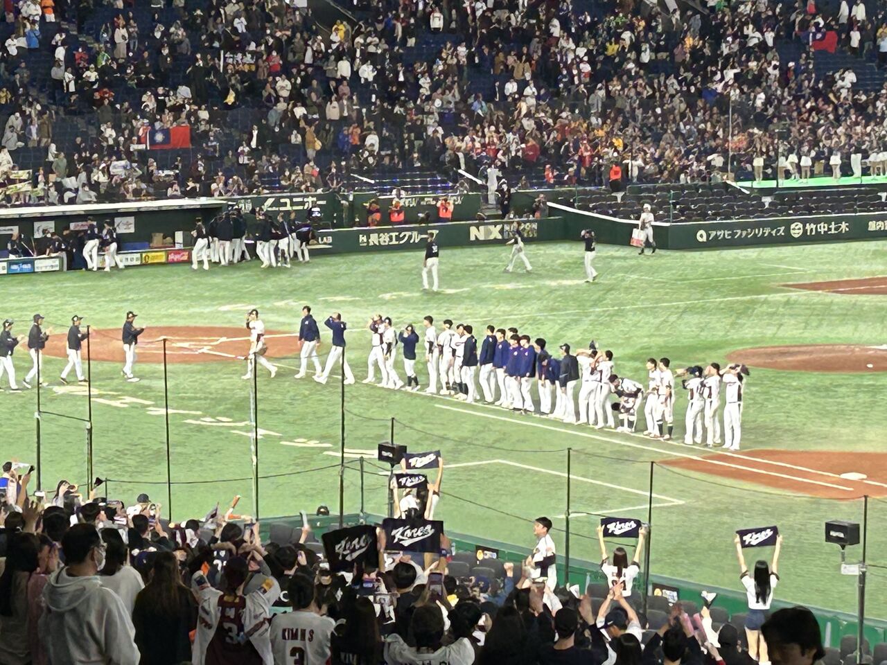 台湾と韓国の一戦、東京ドームは 9,603人が入り、内野は結構な賑わいだった。