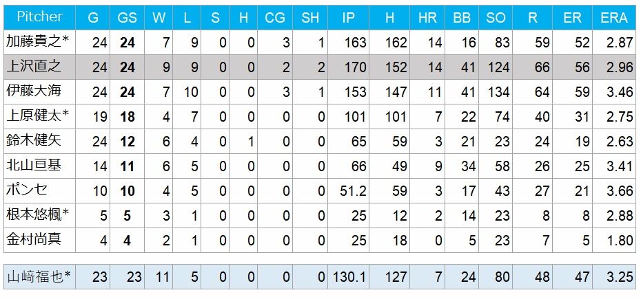 ポスティングでMLB挑戦する上沢が抜けるとして(修正)、山﨑はその穴を埋める形ではある。勝ち星こそ山﨑の方が多いが、投球回数、投球内容では上沢には及ばない。しかしボリュームとして穴埋めができるのは大きいだろう。