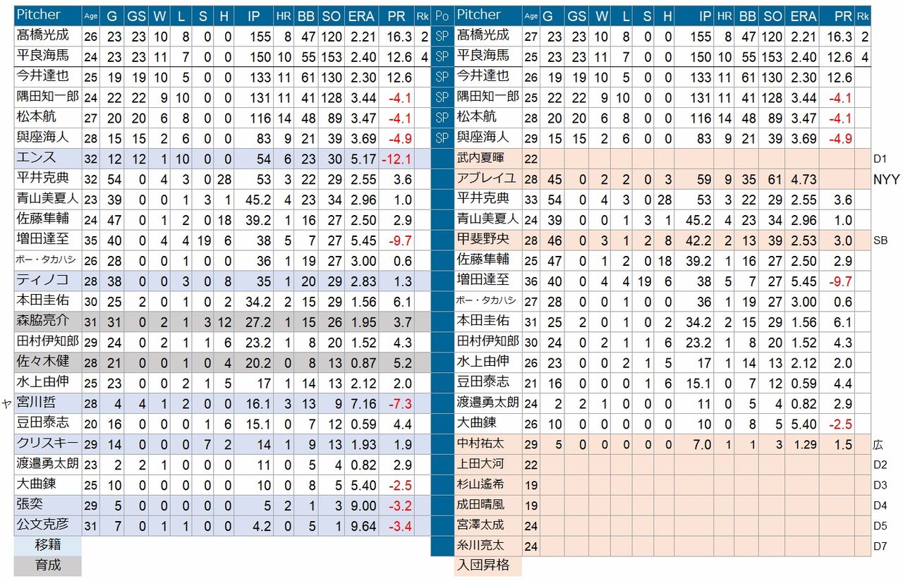 髙橋光、平良、今井、隅田、松本と並ぶ先発陣は、パでもトップクラスだ。打線の援護さえあればポストシーズンはいけるだろう。