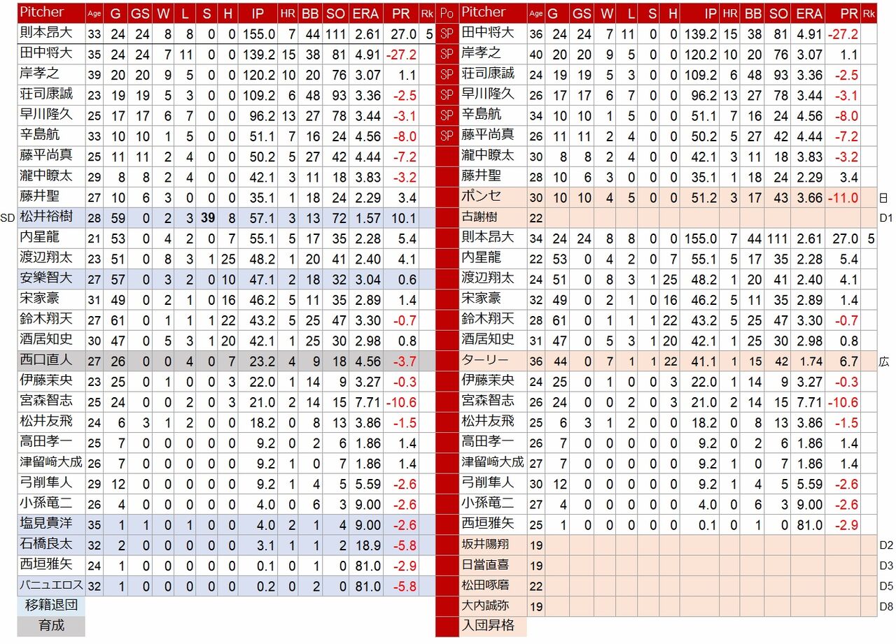 田中将大は出遅れるのが確定的。岸は40歳、ここらが限界だろう。