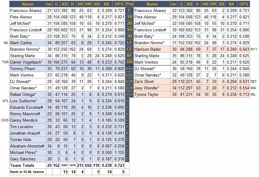 打線はピート・アロンソ、フランシスコ・リンドーアと長距離砲がいるが、確実性のある選手が少ない。