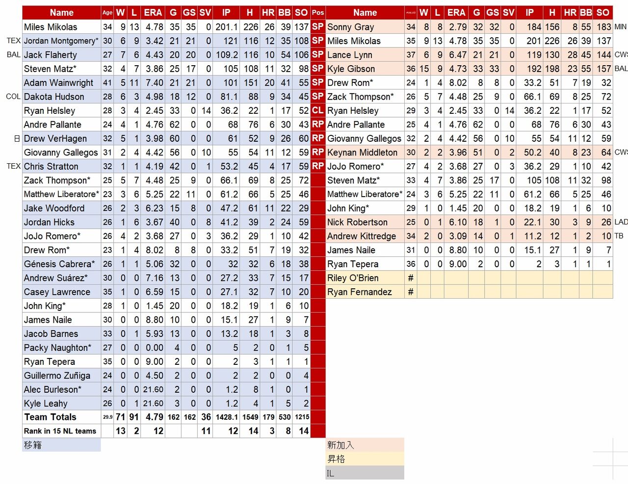 35歳になる嫁さん別嬪マイコラスがエース格だったが、これにツインズから通算98勝、昨年8勝ながら好投が光ったソニー・グレイが加入。