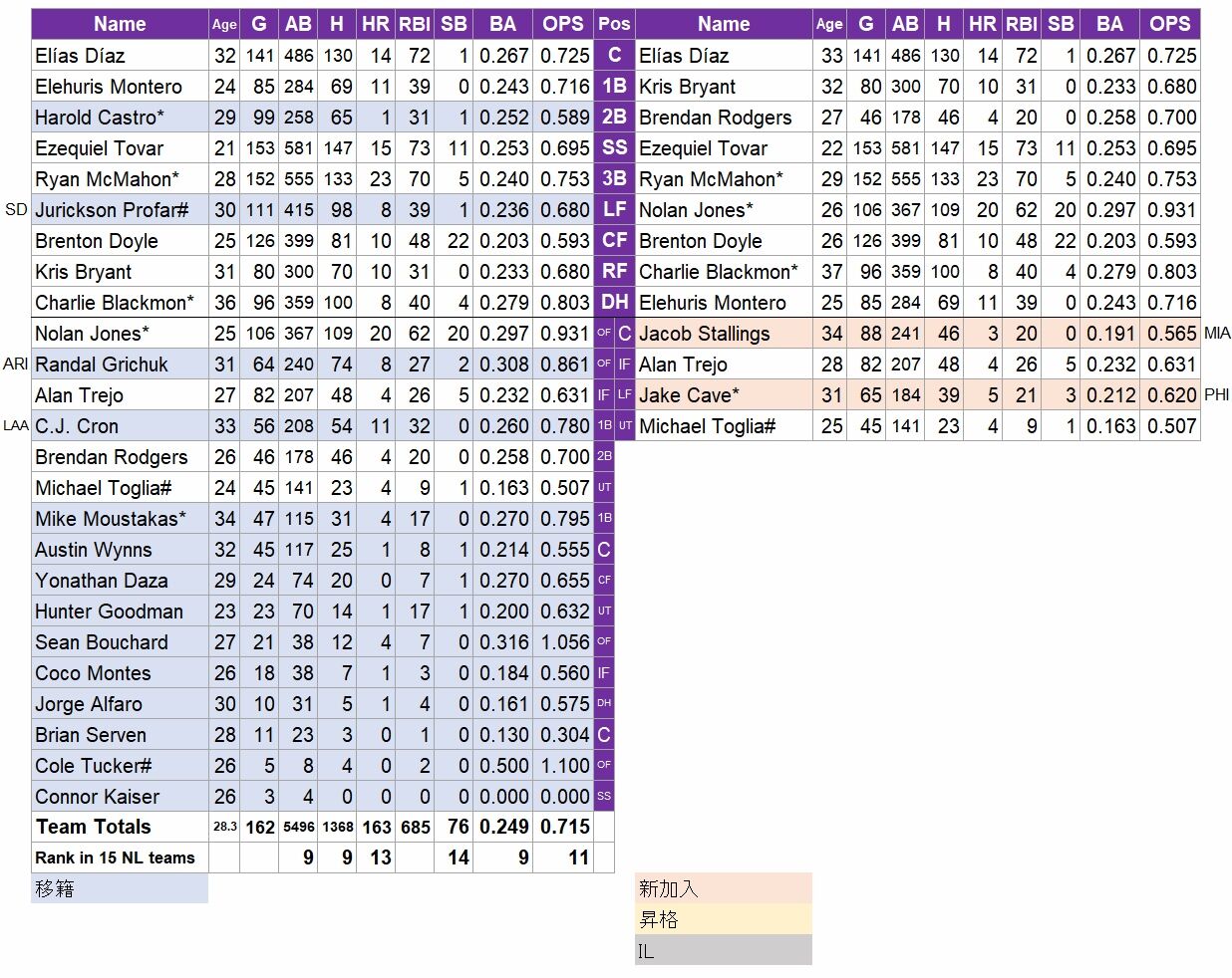 超ベテランのブラックモン、さらにディアズあたりが主軸だろうが、このチームには出塁率が低い=今のMLBでは評価が低い、選手が集まっている。