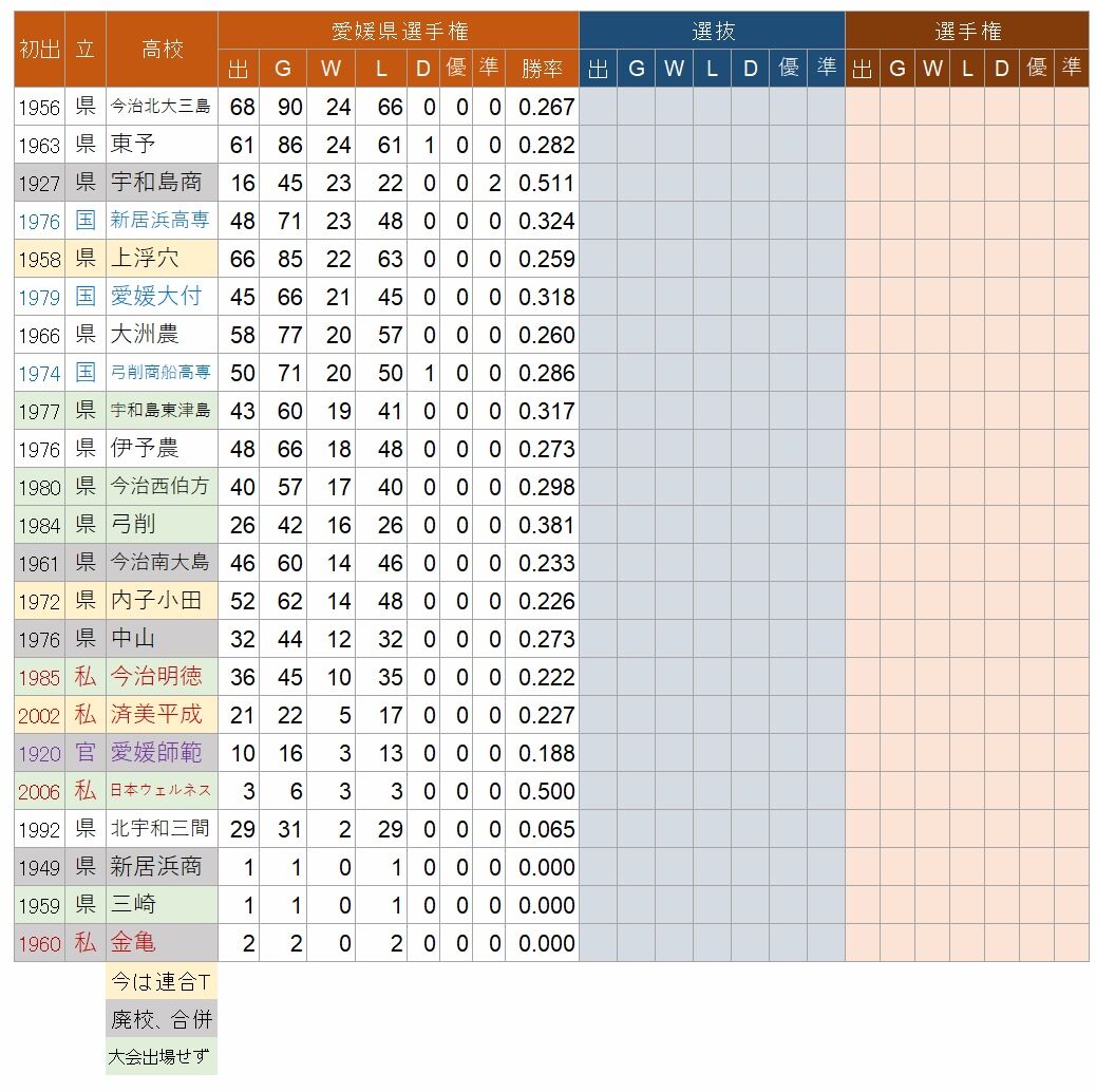 なかで南宇和と今治南は単独で出場できなくなり、連合チームとなっている。