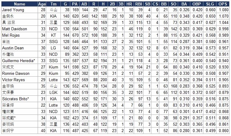 NPBと全く違う世界が広がっている。NPBではOPS.900超はDeNAのオースティン(.970)、ソフトバンクの近藤健介(.960)の2人だけだが、KBOは12人、3割打者はNPBでは3人だけだがKBOは16人いる。