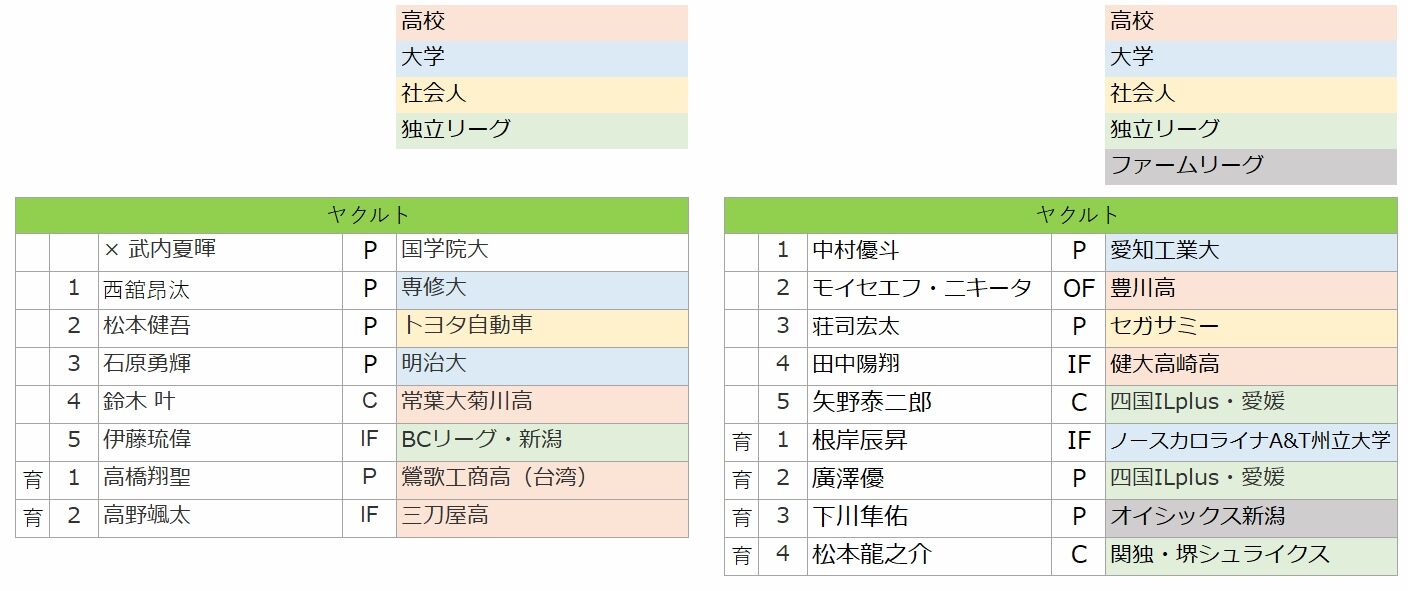 昨年も高校、大学、社会人、独立リーグとまんべんなく獲得していたが、今年もメジャーではないルートから指名している。