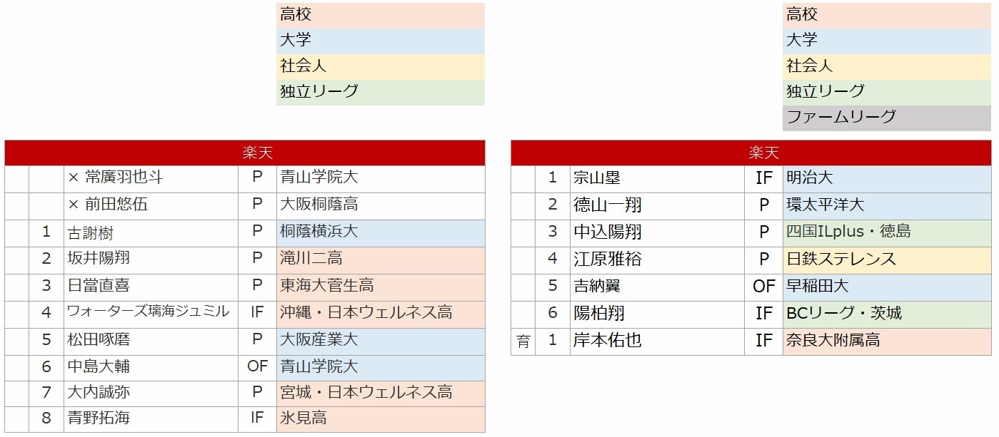 昨年は支配下8人、育成は取らず。今年は支配下6人、育成1人。
